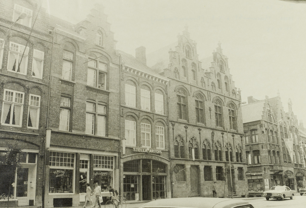 De afbeelding 'Drie winkelhuizen en herberg' wordt ter beschikking gesteld door Agentschap Onroerend Erfgoed (AOE) onder de volgende voorwaarden: Modellicentie voor gratis hergebruik, Naamsvermelding-GelijkDelen 4.0 Internationaal.
