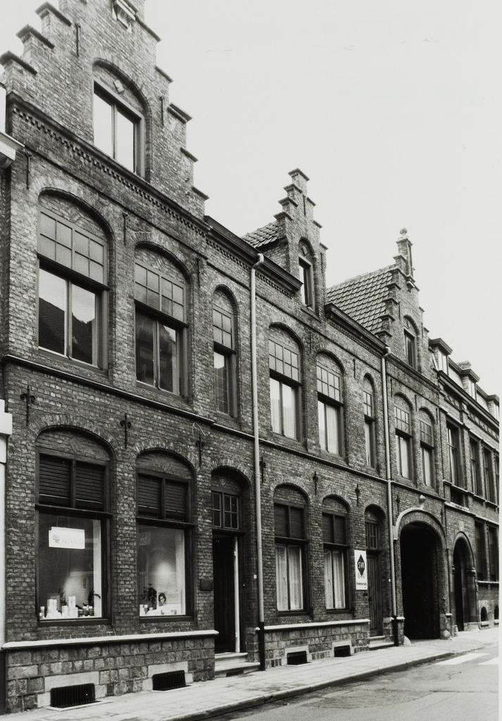 De afbeelding 'Eenheidsbebouwing met twee burgerhuizen' wordt ter beschikking gesteld door Agentschap Onroerend Erfgoed (AOE) onder de volgende voorwaarden: Modellicentie voor gratis hergebruik, Naamsvermelding-GelijkDelen 4.0 Internationaal.