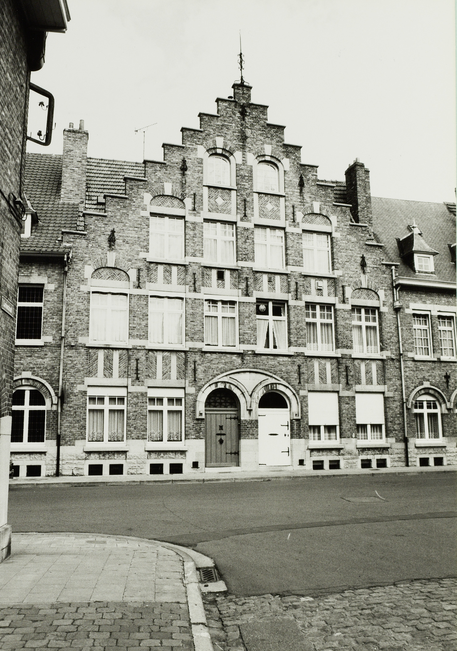 De afbeelding 'Rij van zeven eclectische burgerwoningen' wordt ter beschikking gesteld door Agentschap Onroerend Erfgoed (AOE) onder de volgende voorwaarden: Modellicentie voor gratis hergebruik, Naamsvermelding-GelijkDelen 4.0 Internationaal.