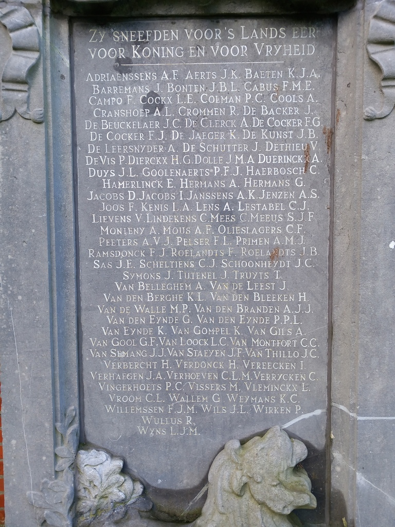 De afbeelding 'Gedenksteen Eerste Wereldoorlog' gemaakt door Duchêne, Helena wordt ter beschikking gesteld door Agentschap Onroerend Erfgoed (AOE) onder de volgende voorwaarden: Modellicentie voor gratis hergebruik, Naamsvermelding-GelijkDelen 4.0 Internationaal.