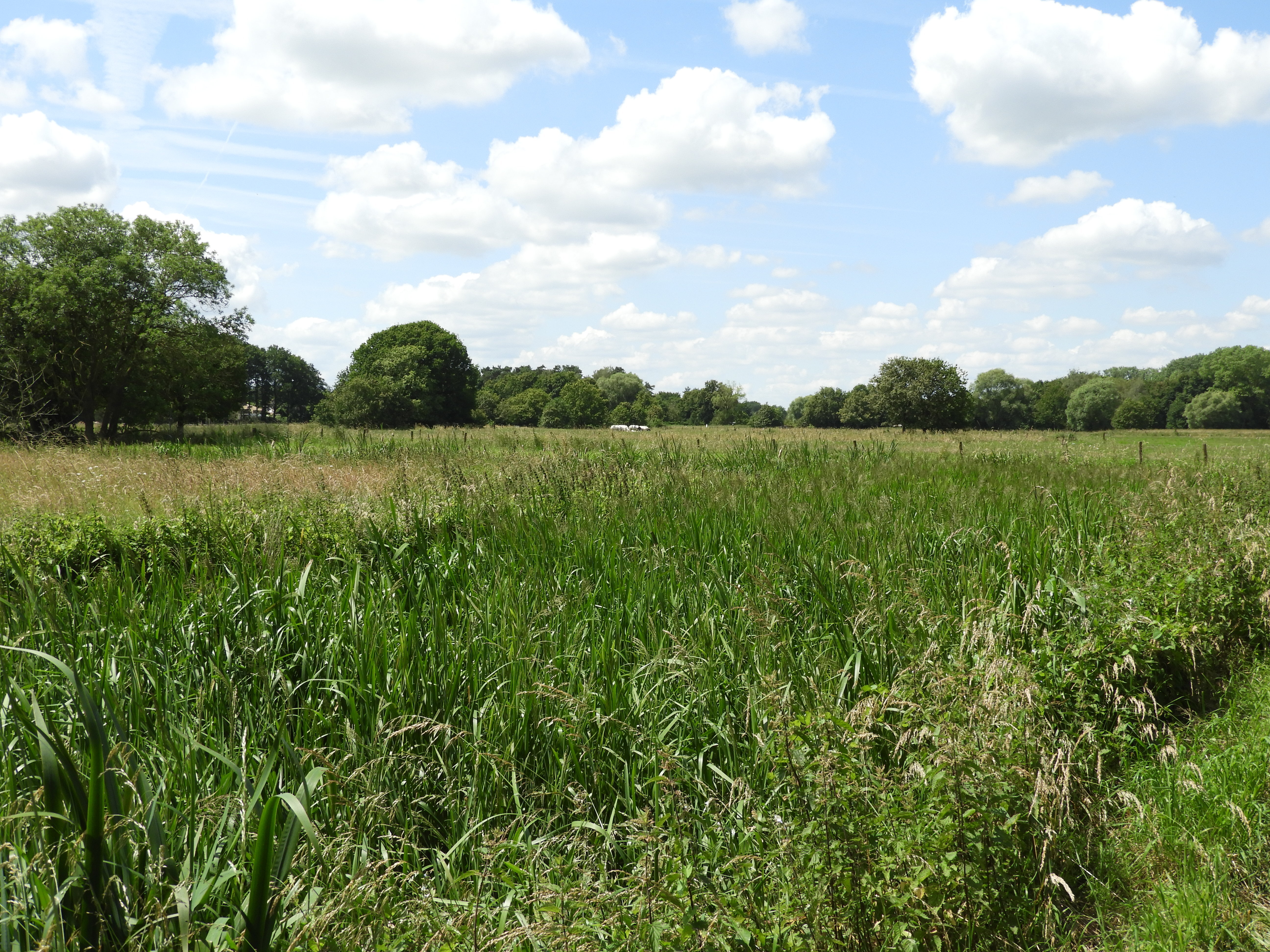 Het riet op de voorgrond geeft de ligging van de Grote Laak weer. Foto is georiënteerd op het westen.