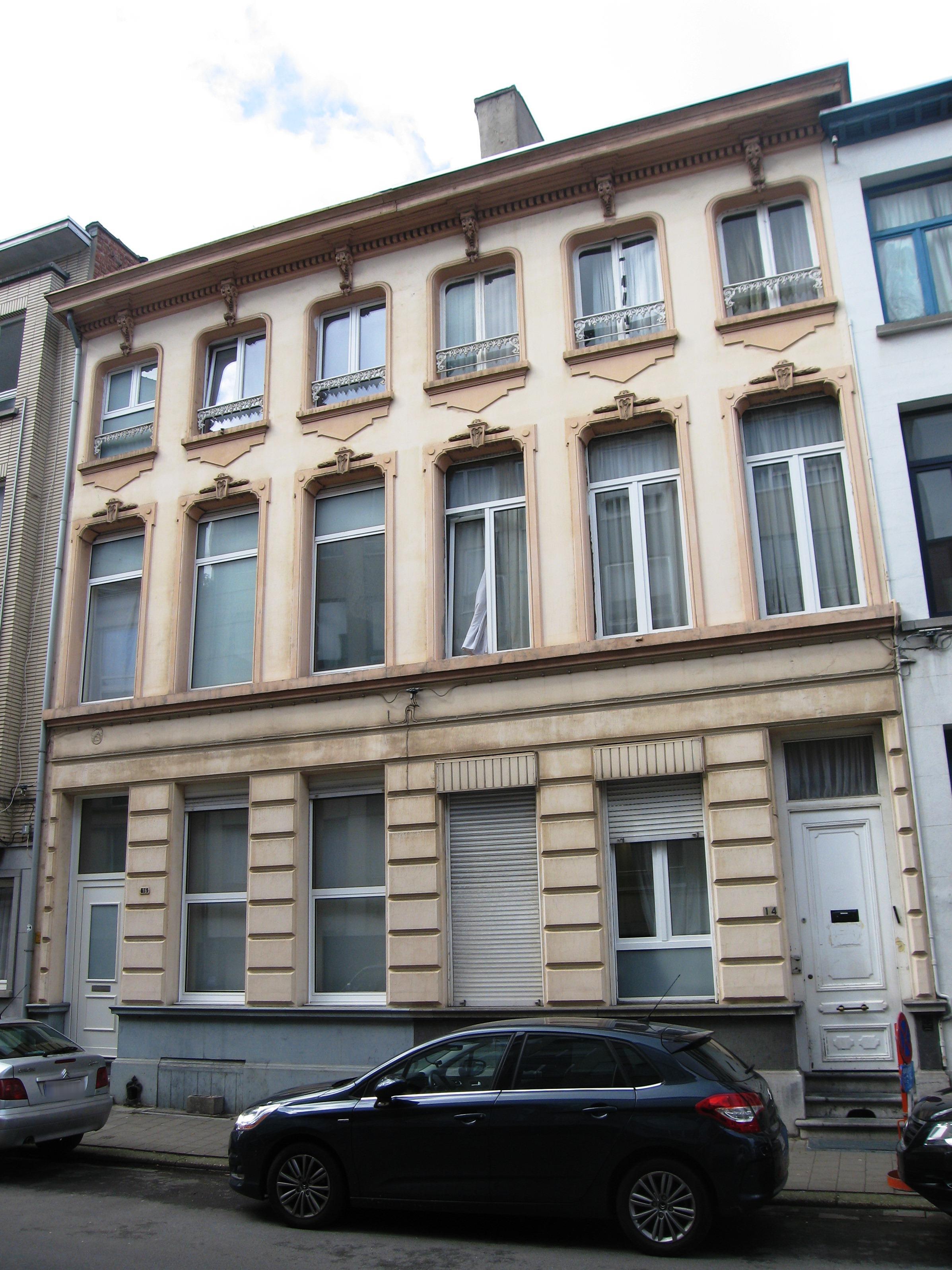 De afbeelding 'Antwerpen Haringrodestraat 14-16' gemaakt door Braeken, Jo wordt ter beschikking gesteld door Agentschap Onroerend Erfgoed (AOE) onder de volgende voorwaarden: Modellicentie voor gratis hergebruik, Naamsvermelding-GelijkDelen 4.0 Internationaal.