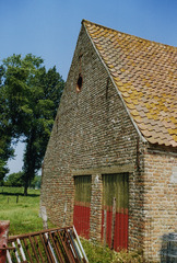 Omschrijving: schuur - zijgevel met in uilegat ( kruis en metselwerk )