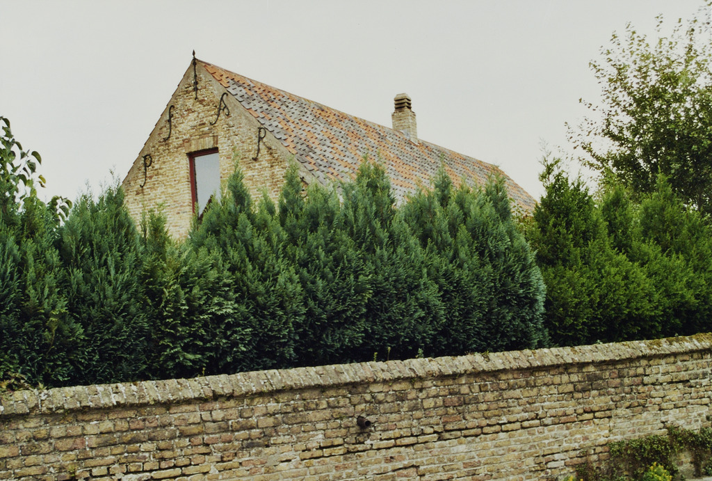 Omschrijving: ROHM - WEST-VLAANDEREN CEL M & L hoeve in dorp XIX algemeen beeld afsluitingsmuur