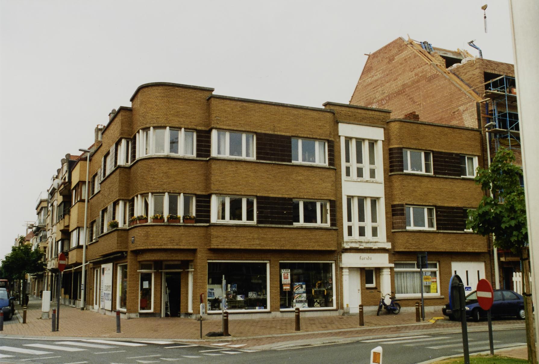 De afbeelding 'Hoekappartementsgebouw' gemaakt door Hooft, Elise wordt ter beschikking gesteld door Agentschap Onroerend Erfgoed (AOE) onder de volgende voorwaarden: Modellicentie voor gratis hergebruik, Naamsvermelding-GelijkDelen 4.0 Internationaal.