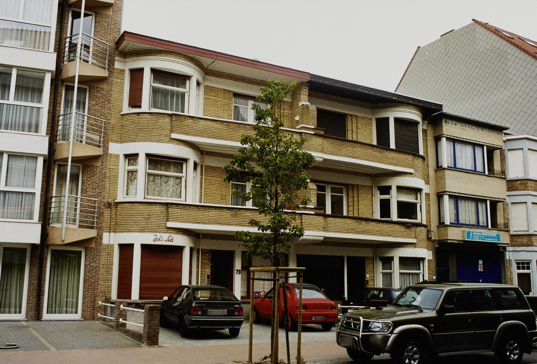 De afbeelding 'Appartementsgebouw Joli Nid' gemaakt door Callaert, Gonda wordt ter beschikking gesteld door Agentschap Onroerend Erfgoed (AOE) onder de volgende voorwaarden: Modellicentie voor gratis hergebruik, Naamsvermelding-GelijkDelen 4.0 Internationaal.