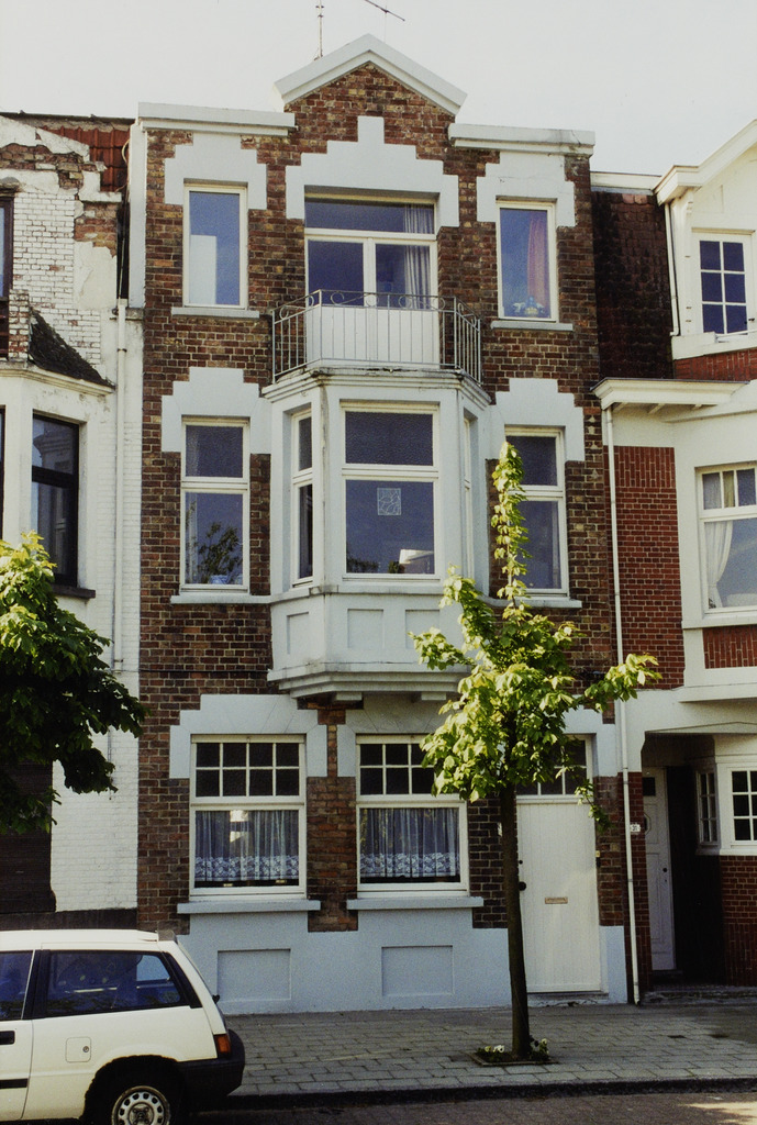 De afbeelding 'Rij burgerhuizen' gemaakt door Hooft, Elise wordt ter beschikking gesteld door Agentschap Onroerend Erfgoed (AOE) onder de volgende voorwaarden: Modellicentie voor gratis hergebruik, Naamsvermelding-GelijkDelen 4.0 Internationaal.