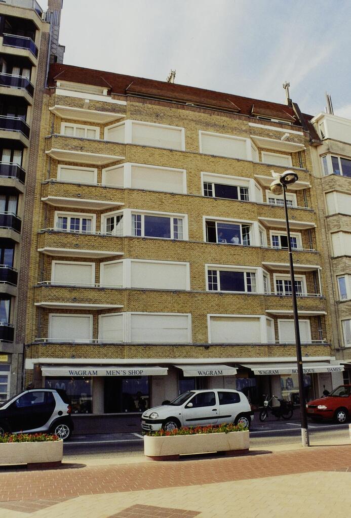 De afbeelding 'Zeedijk-Het Zoute' gemaakt door Hooft, Elise wordt ter beschikking gesteld door Agentschap Onroerend Erfgoed (AOE) onder de volgende voorwaarden: Modellicentie voor gratis hergebruik, Naamsvermelding-GelijkDelen 4.0 Internationaal.