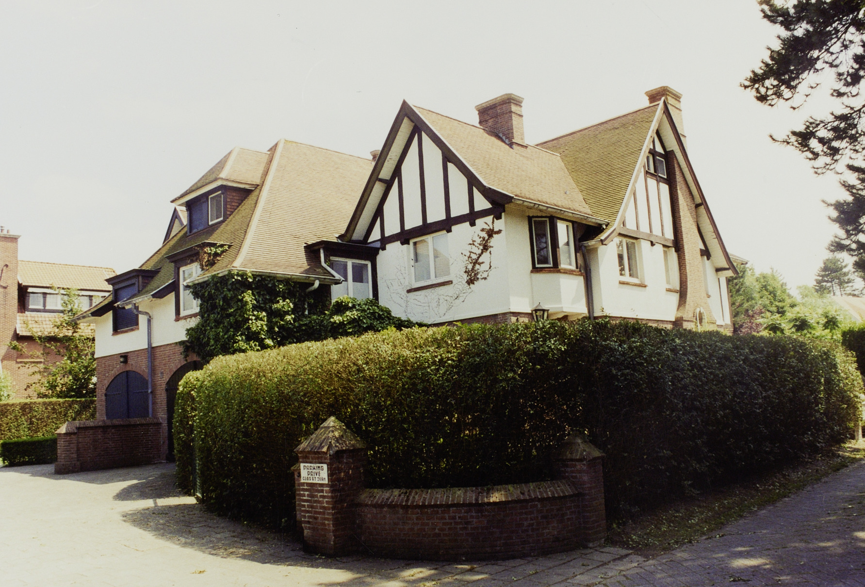 De afbeelding 'Dubbele villa Mary Green / Clos Saint Jean' gemaakt door Callaert, Gonda wordt ter beschikking gesteld door Agentschap Onroerend Erfgoed (AOE) onder de volgende voorwaarden: Modellicentie voor gratis hergebruik, Naamsvermelding-GelijkDelen 4.0 Internationaal.