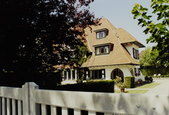 De afbeelding 'Dubbele villa Philemon / Baucis' gemaakt door Callaert, Gonda wordt ter beschikking gesteld door Agentschap Onroerend Erfgoed (AOE) onder de volgende voorwaarden: Modellicentie voor gratis hergebruik, Naamsvermelding-GelijkDelen 4.0 Internationaal.