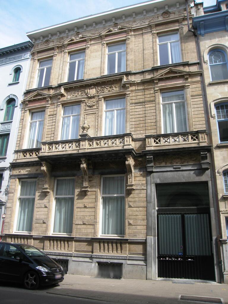 De afbeelding 'Herenhuis in eclectische stijl' gemaakt door Braeken, Jo wordt ter beschikking gesteld door Agentschap Onroerend Erfgoed (AOE) onder de volgende voorwaarden: Modellicentie voor gratis hergebruik, Naamsvermelding-GelijkDelen 4.0 Internationaal.