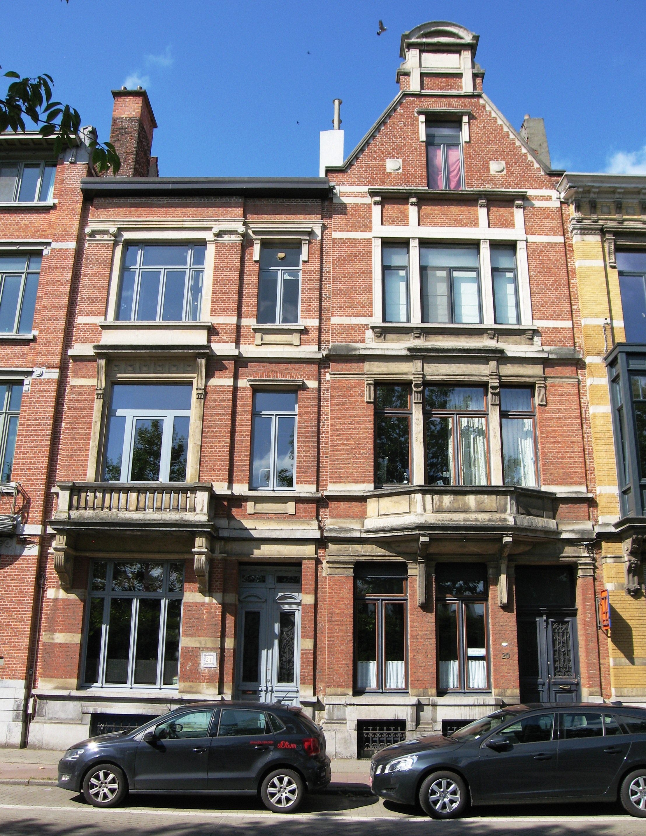 De afbeelding 'Geheel van drie burgerhuizen' gemaakt door Braeken, Jo wordt ter beschikking gesteld door Agentschap Onroerend Erfgoed (AOE) onder de volgende voorwaarden: Modellicentie voor gratis hergebruik, Naamsvermelding-GelijkDelen 4.0 Internationaal.