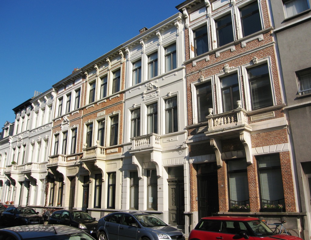 De afbeelding 'Ensemble van gekoppelde burgerhuizen' gemaakt door Braeken, Jo wordt ter beschikking gesteld door Agentschap Onroerend Erfgoed (AOE) onder de volgende voorwaarden: Modellicentie voor gratis hergebruik, Naamsvermelding-GelijkDelen 4.0 Internationaal.