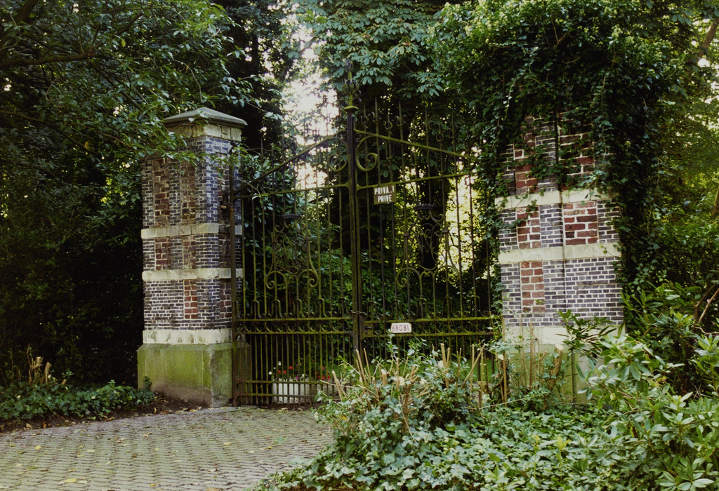 Omschrijving: Poort tot Kasteelpark vanop markt