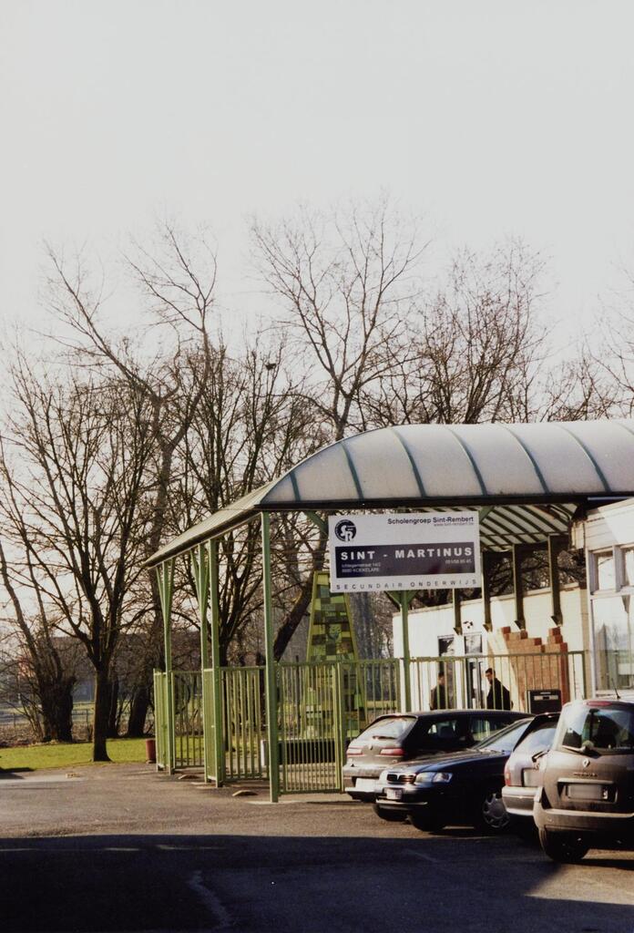 Omschrijving: ROHM West-Vlaanderen Cel Monumenten en Landschappen (begin) straatje in naar school school: recuperatie glasraam sint-Martinus
