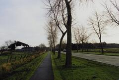 Omschrijving: R-O Vlaanderen onroerend erfgoed Straatbeeld Populieren
