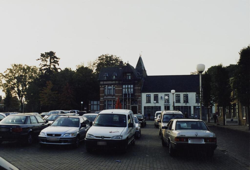 Omschrijving: ROHM West-Vlaanderen Cel Monumenten en Landschappen straatbeeld zicht op gemeentehuis en dexia