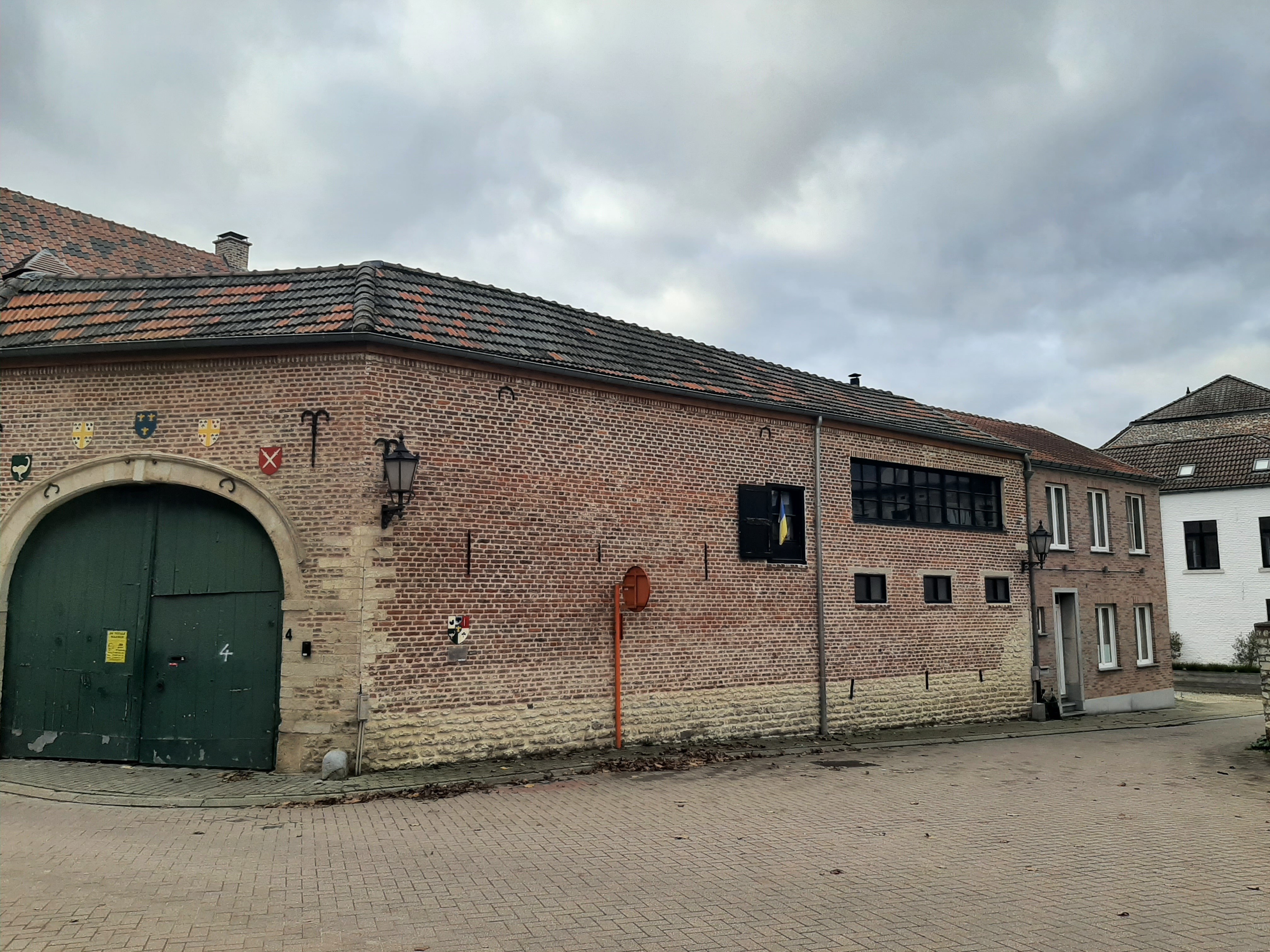 De afbeelding 'Gesloten hoeve met korfboognrijpoort' gemaakt door Debonne, Vincent wordt ter beschikking gesteld door Agentschap Onroerend Erfgoed (AOE) onder de volgende voorwaarden: Modellicentie voor gratis hergebruik, Naamsvermelding-GelijkDelen 4.0 Internationaal.