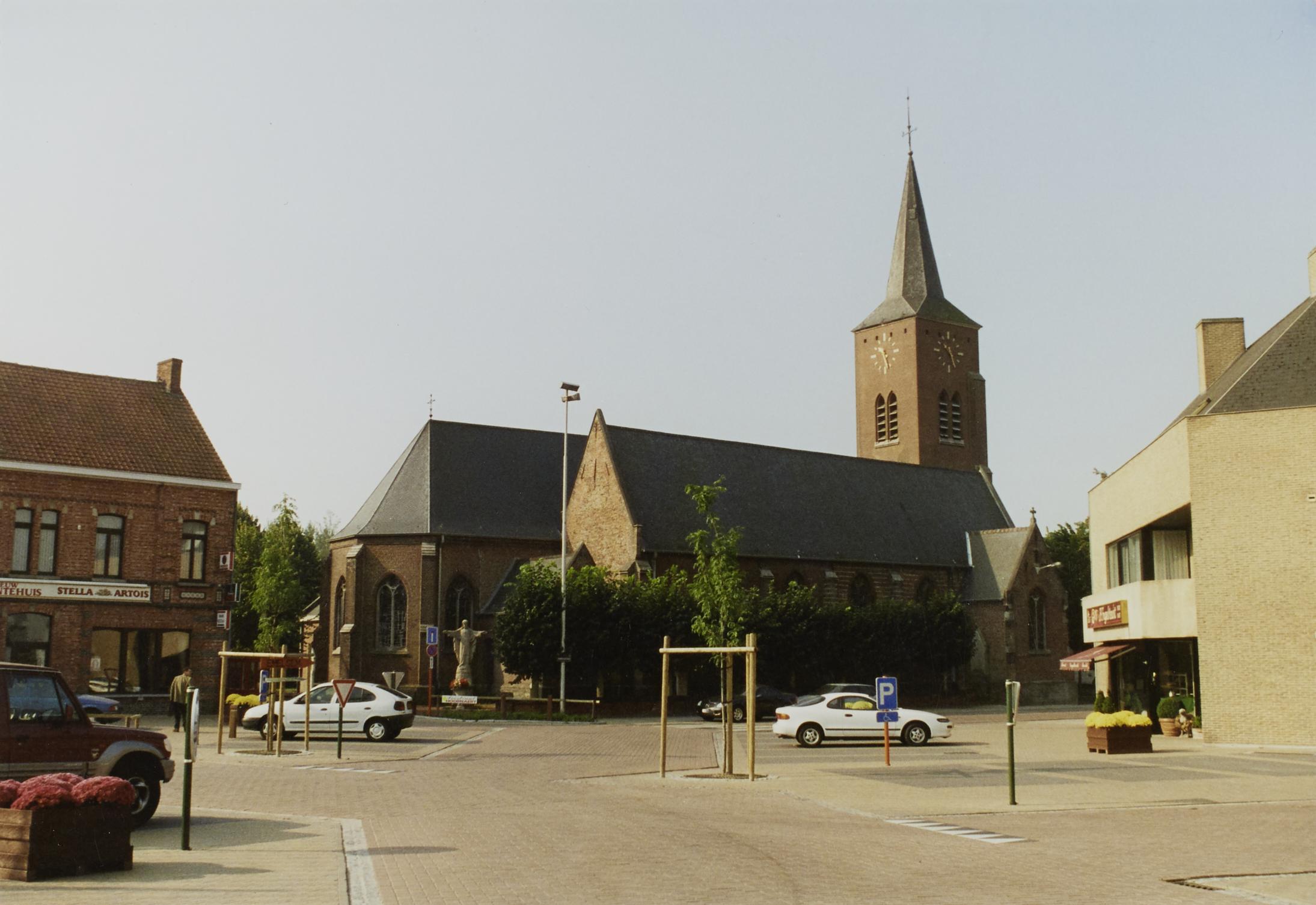 Omschrijving: St jan - de - Doperkerk zicht van op Kachtemsplein