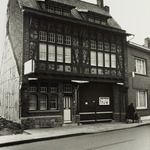 De afbeelding 'Burgerhuis met vakwerkwand met sgraffito' wordt ter beschikking gesteld door Agentschap Onroerend Erfgoed (AOE) onder de volgende voorwaarden: Modellicentie voor gratis hergebruik, Naamsvermelding-GelijkDelen 4.0 Internationaal.