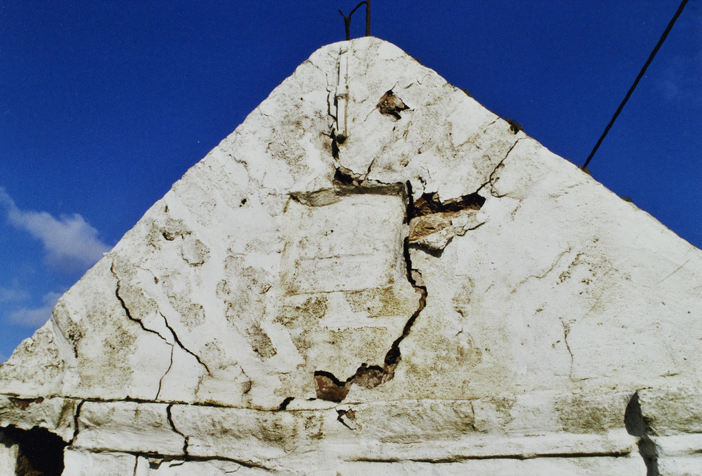 Omschrijving: ROHM - WEST-VLAANDEREN CEL M & L 'koorts' of Clercqskapelle midden 19 de buitenzijde topgevel