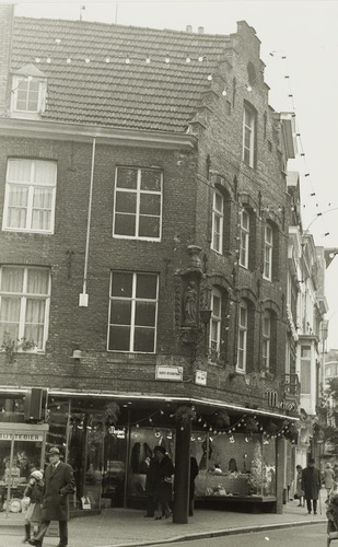 Omschrijving: Hoek en Korte Steenstraat Partikuliere woning Twee verdiepingen en een zolderverdieping hoog kant van de grote markt (trapgevel); kant van de korte steenstraat, een verdieping hoog en afgedekt met horizontale kroonlijst. prachtige gebeeldhouwde hoeknis met mariabeeld.