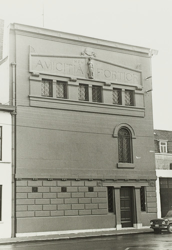 Omschrijving: Vergadergebouw Neo-Klassicisme. Gedateerd 1907. De bepleisterde gevel telt boven de benedenverdieping, twee boven- verdiepingen.