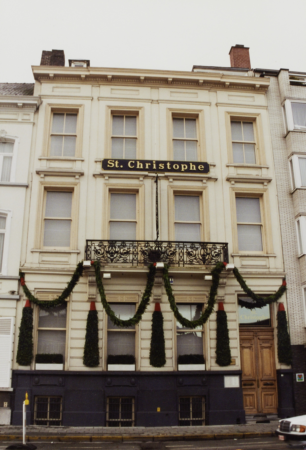 De afbeelding 'Herenhuis Sint-Christophe met koetshuis' gemaakt door De Gunsch, Ann wordt ter beschikking gesteld door Agentschap Onroerend Erfgoed (AOE) onder de volgende voorwaarden: Modellicentie voor gratis hergebruik, Naamsvermelding-GelijkDelen 4.0 Internationaal.