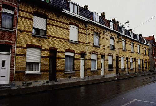 De afbeelding 'Rij arbeiderswoningen' gemaakt door De Gunsch, Ann wordt ter beschikking gesteld door Agentschap Onroerend Erfgoed (AOE) onder de volgende voorwaarden: Modellicentie voor gratis hergebruik, Naamsvermelding-GelijkDelen 4.0 Internationaal.