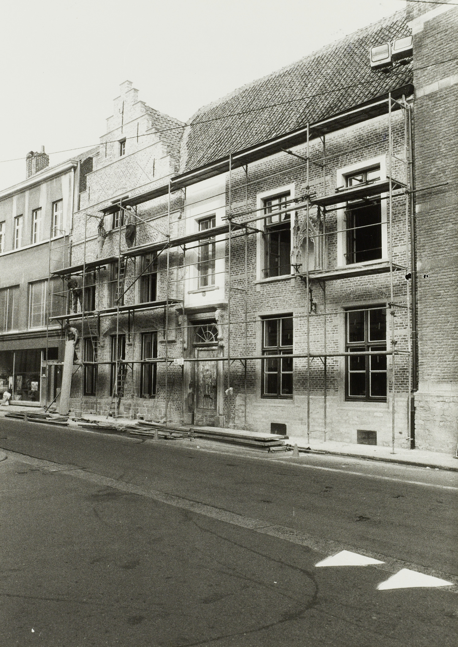 Omschrijving: Oud Huis Archivaris-toestand tijdens restauratie.