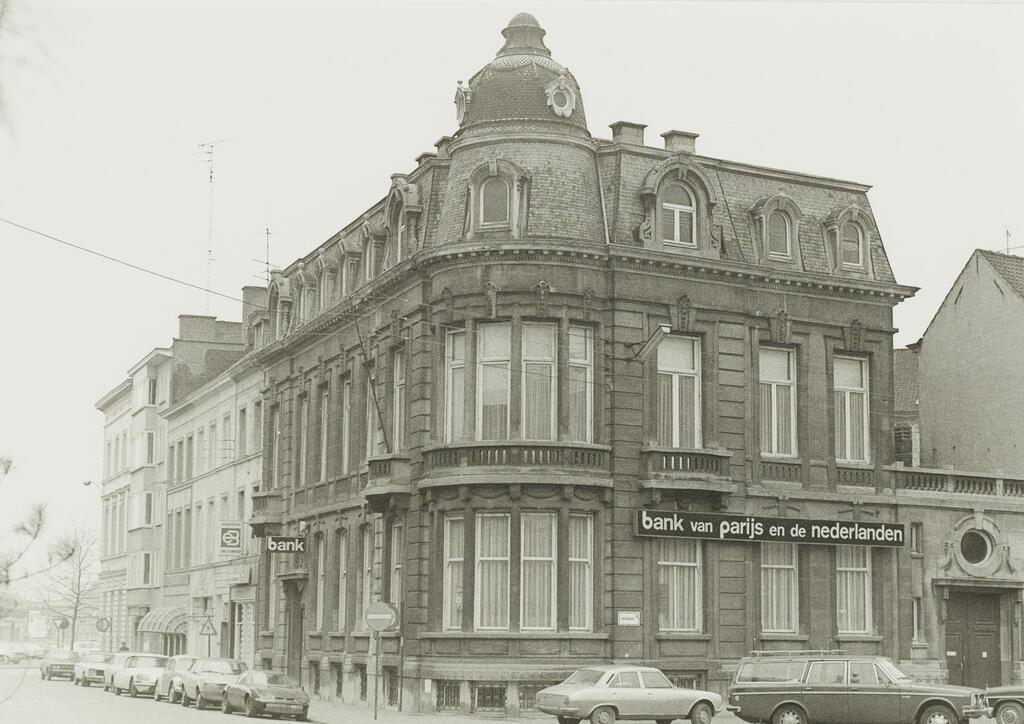 Omschrijving: hoek West-Vlaanderen patriciërswoning ( nu bankgebouw ) Neo-klassicisme. de gevels tellen kelderverdieping, benedenverdieping, één bovenverdieping en één zolderverdieping.