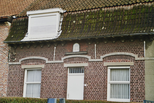 Omschrijving: ROHM - WEST-VLAANDEREN CEL M & L arbeidershuisje XX A detail voorgevel