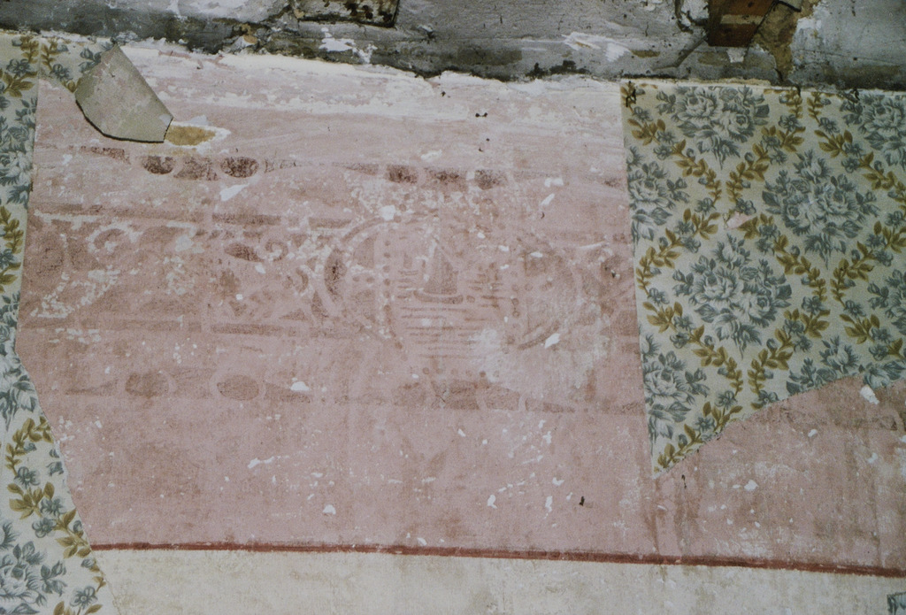 Omschrijving: Huis aan ingang voor restauratie, sjablaan/ behang C. Metdepenningken