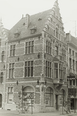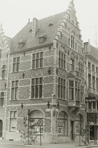 Omschrijving: Hoek Doorniksestraat en Schouwburgplein West-Vlaanderen apotheekgebouw, nu bankgebouw. Neo-Vlaamse renaissance? Gedateerd Anno 1908. Gebouwd door apotheker De Boey. De gevel, kant Doorniksestraat, tekt boven de benedenverdieping, twee bovenverdiepingen en één zolderverdieping (trapgevel. Kant Schouwburgplein afgedekt met horizontal kroonlijsten: De timpanen van de vensters op de tweede verdieping, kant Doorniksestraat, zijn symbolische afbeeldingen in verband met de artsenijbereid kunde.