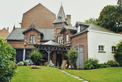 De afbeelding 'Herenhuis met koetshuis' gemaakt door De Gunsch, Ann wordt ter beschikking gesteld door Agentschap Onroerend Erfgoed (AOE) onder de volgende voorwaarden: Modellicentie voor gratis hergebruik, Naamsvermelding-GelijkDelen 4.0 Internationaal.