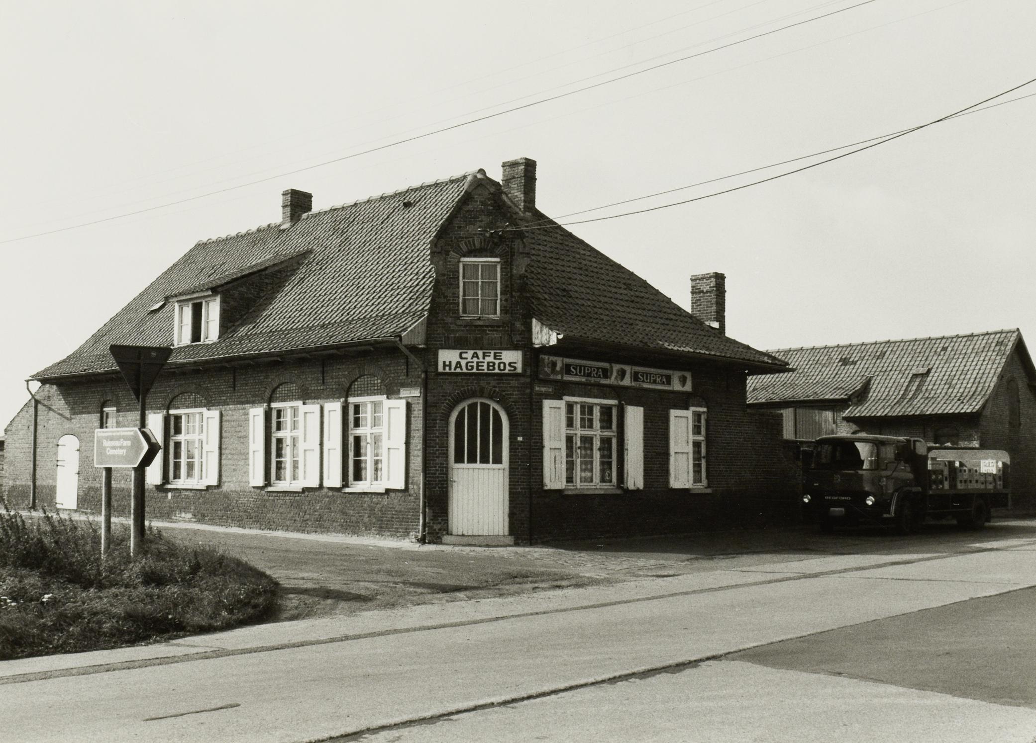 De afbeelding 'Café Hagebos' wordt ter beschikking gesteld door Agentschap Onroerend Erfgoed (AOE) onder de volgende voorwaarden: Modellicentie voor gratis hergebruik, Naamsvermelding-GelijkDelen 4.0 Internationaal.
