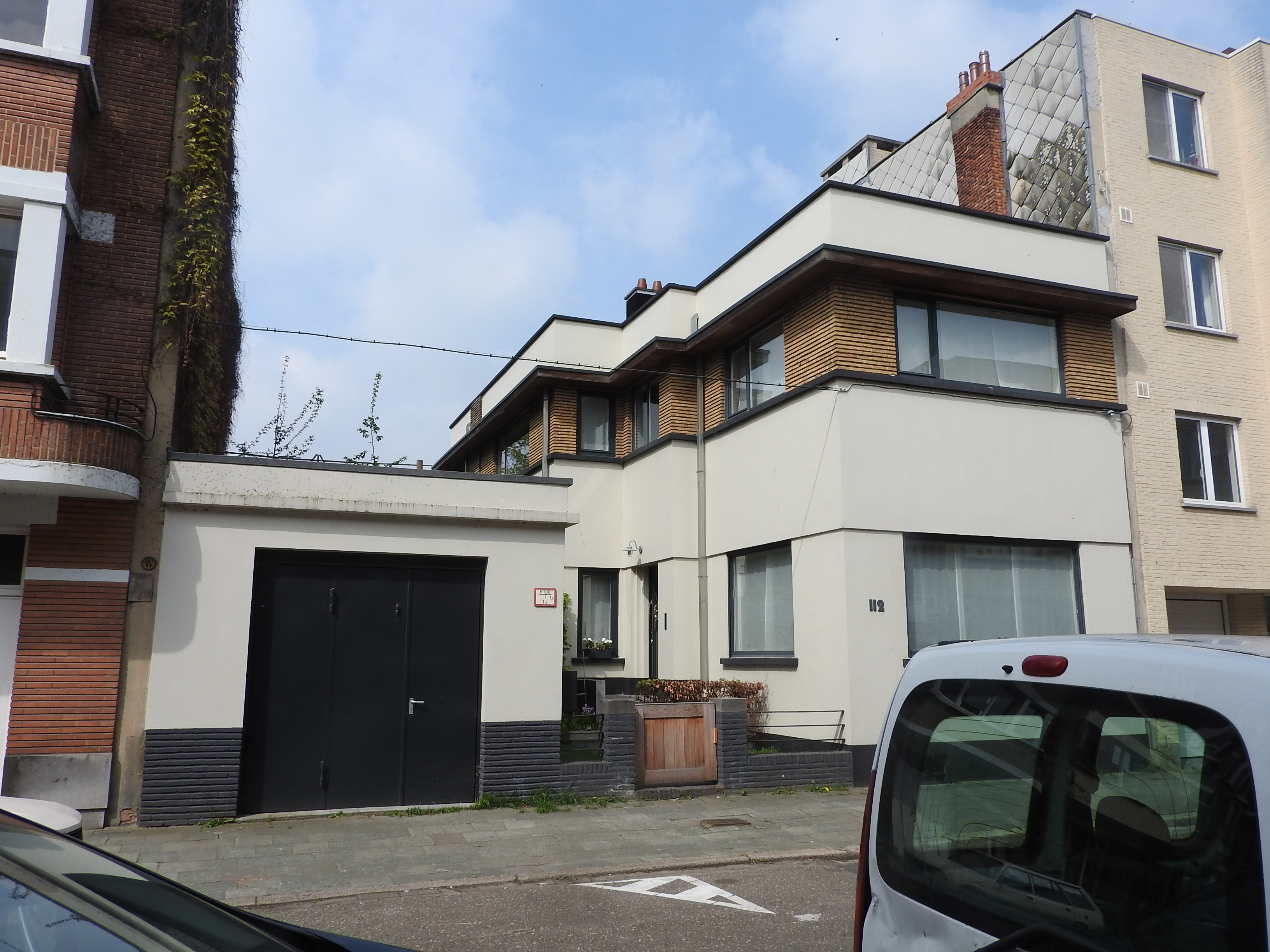 De afbeelding 'Modernistische meergezinswoning' gemaakt door Hooft, Elise wordt ter beschikking gesteld door Agentschap Onroerend Erfgoed (AOE) onder de volgende voorwaarden: Modellicentie voor gratis hergebruik, Naamsvermelding-GelijkDelen 4.0 Internationaal.