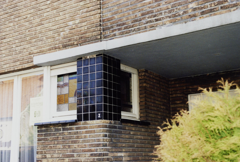 Omschrijving: R-O Vlaanderen onroerend erfgoed interbellumwoning raampje met glas-in-lood