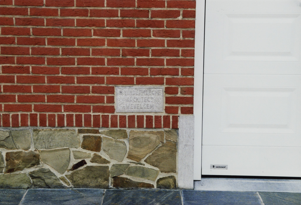Omschrijving: R-O Vlaanderen onroerend erfgoed rijwoning naamplaatje architect