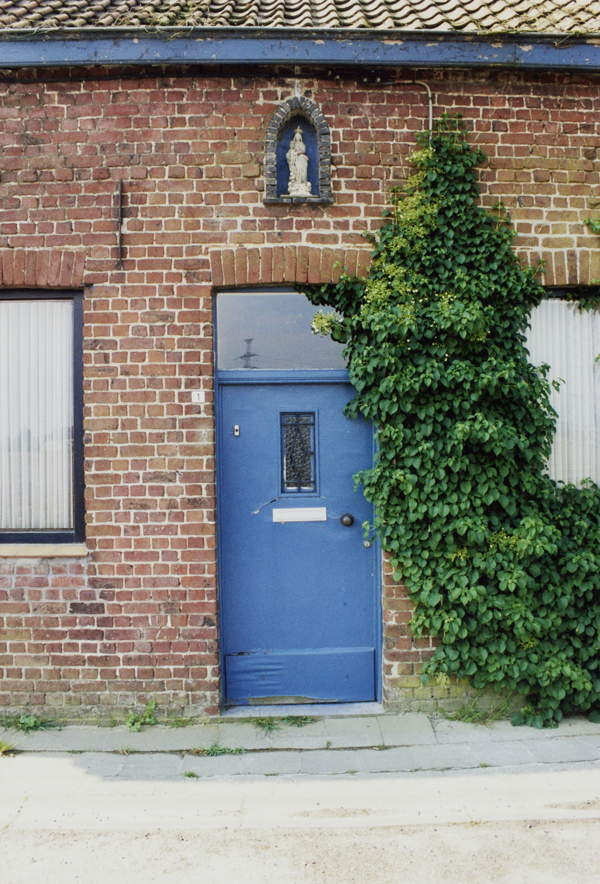 Omschrijving: R-O Vlaanderen onroerend erfgoed eenlaagswoning deur en gevelkapel