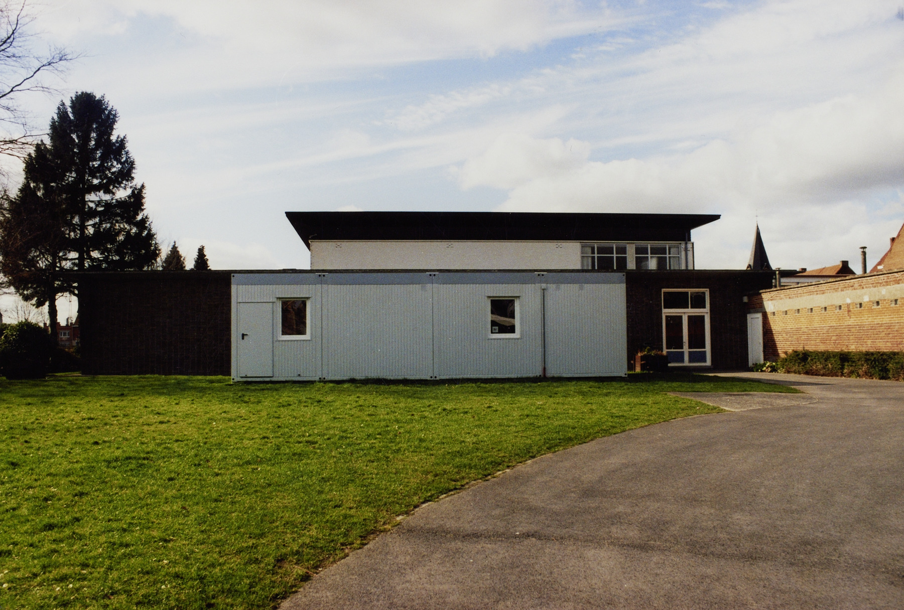 Omschrijving: R-O Vlaanderen onroerend erfgoed schoolgebouwen vanaf Nieuwstraat