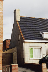 Omschrijving: R-O Vlaanderen onroerend erfgoed eenlaagswoningen westelijke zijgevel