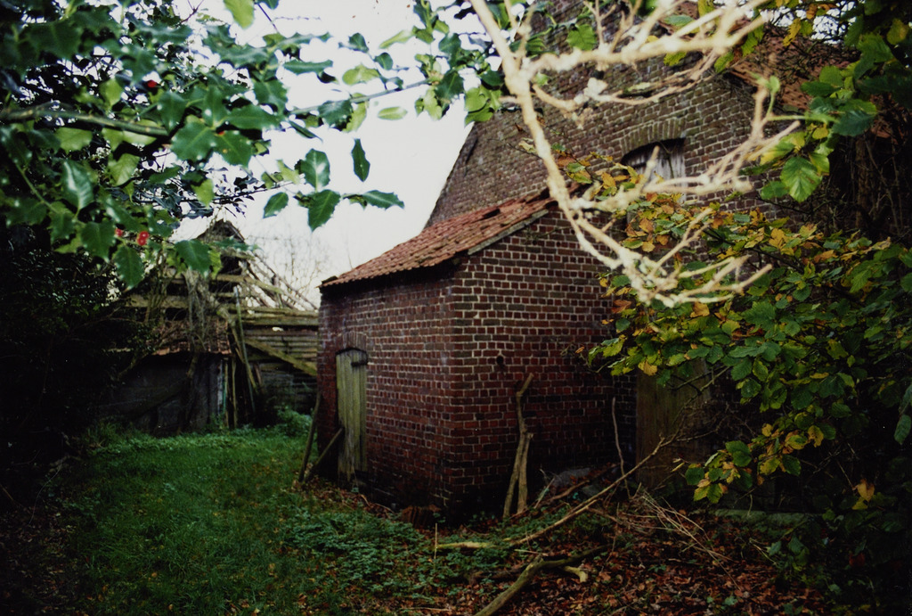 Omschrijving: R-O Vlaanderen onroerend erfgoed hoevetje nutsgebouwfje links