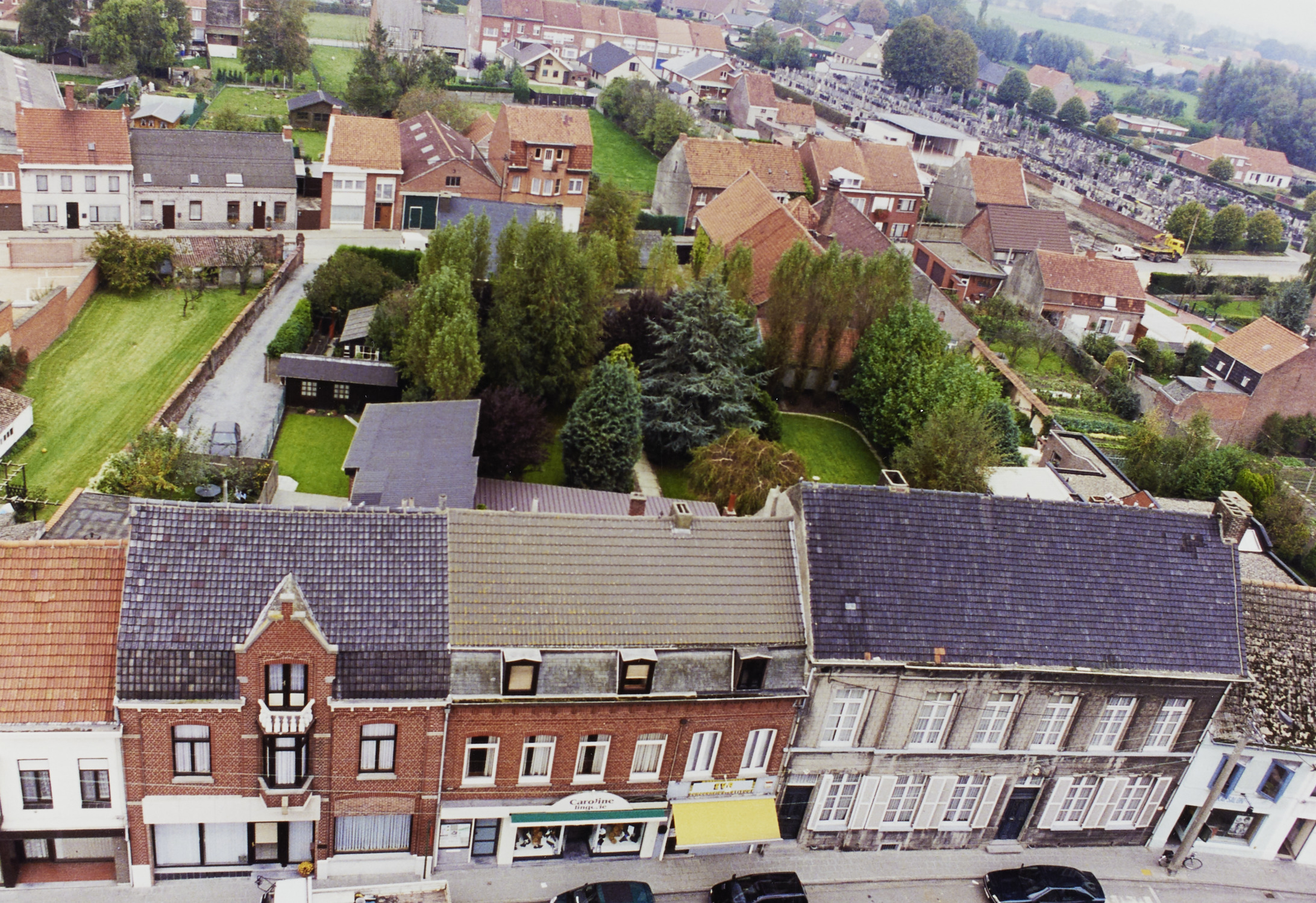 Omschrijving: Zicht van of kerktoren Boomgaardstraat