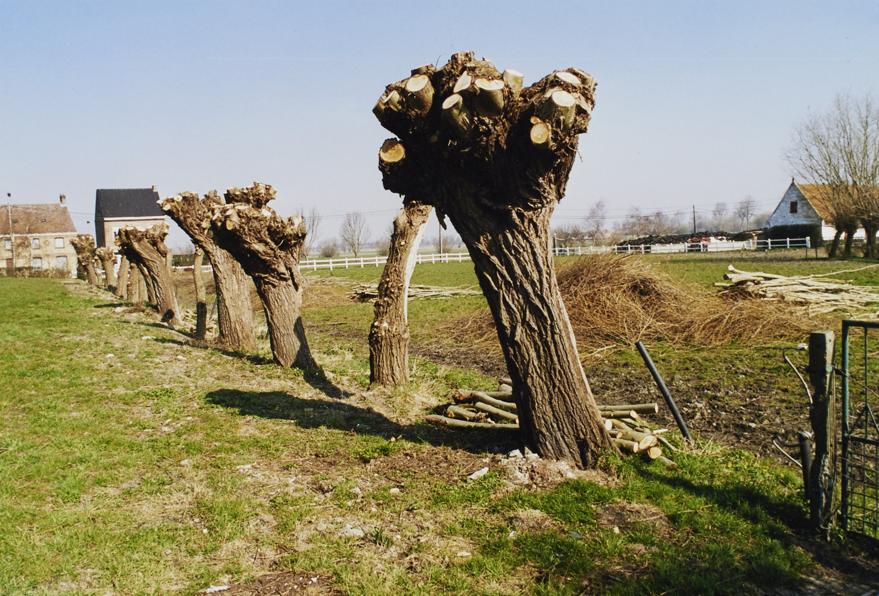 Omschrijving: ROHM - WEST-VLAANDEREN CEL M & L Pollinchof knotbomen tss hoeve en kerk