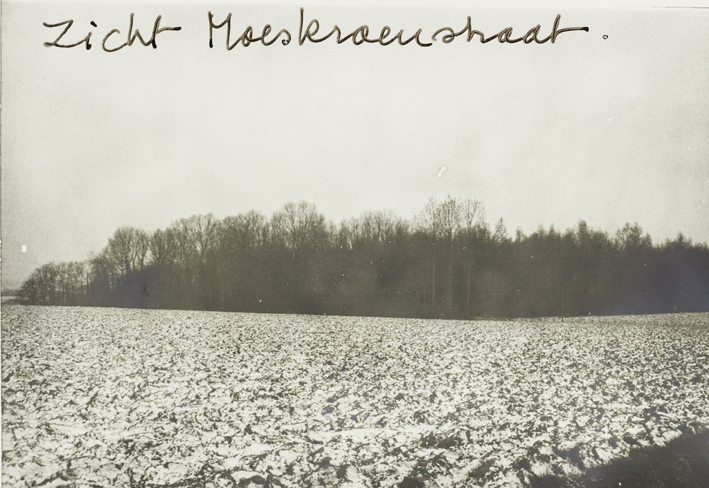 Omschrijving: zicht Moeskroenstraat op gemengd loofbos IJzerhandstraat.