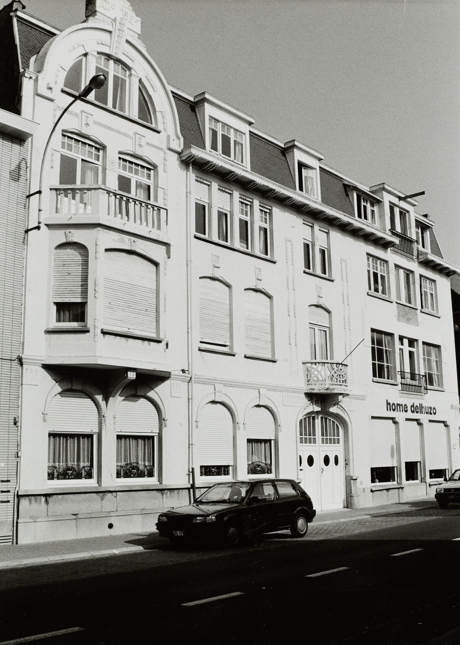 De afbeelding 'Appartementsgebouw Home Delhuzo' gemaakt door Kerrinckx, Hans wordt ter beschikking gesteld door Agentschap Onroerend Erfgoed (AOE) onder de volgende voorwaarden: Modellicentie voor gratis hergebruik, Naamsvermelding-GelijkDelen 4.0 Internationaal.