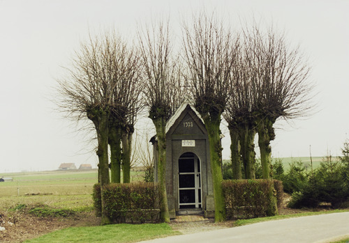De afbeelding 'Wegkapel gedateerd 1923' gemaakt door Vanneste, Pol wordt ter beschikking gesteld door Agentschap Onroerend Erfgoed (AOE) onder de volgende voorwaarden: Modellicentie voor gratis hergebruik, Naamsvermelding-GelijkDelen 4.0 Internationaal.