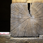 Dakkap van de Gravenkapel, jaarringpatronen op kopse kant blokkelen aan noordzijde dakkap