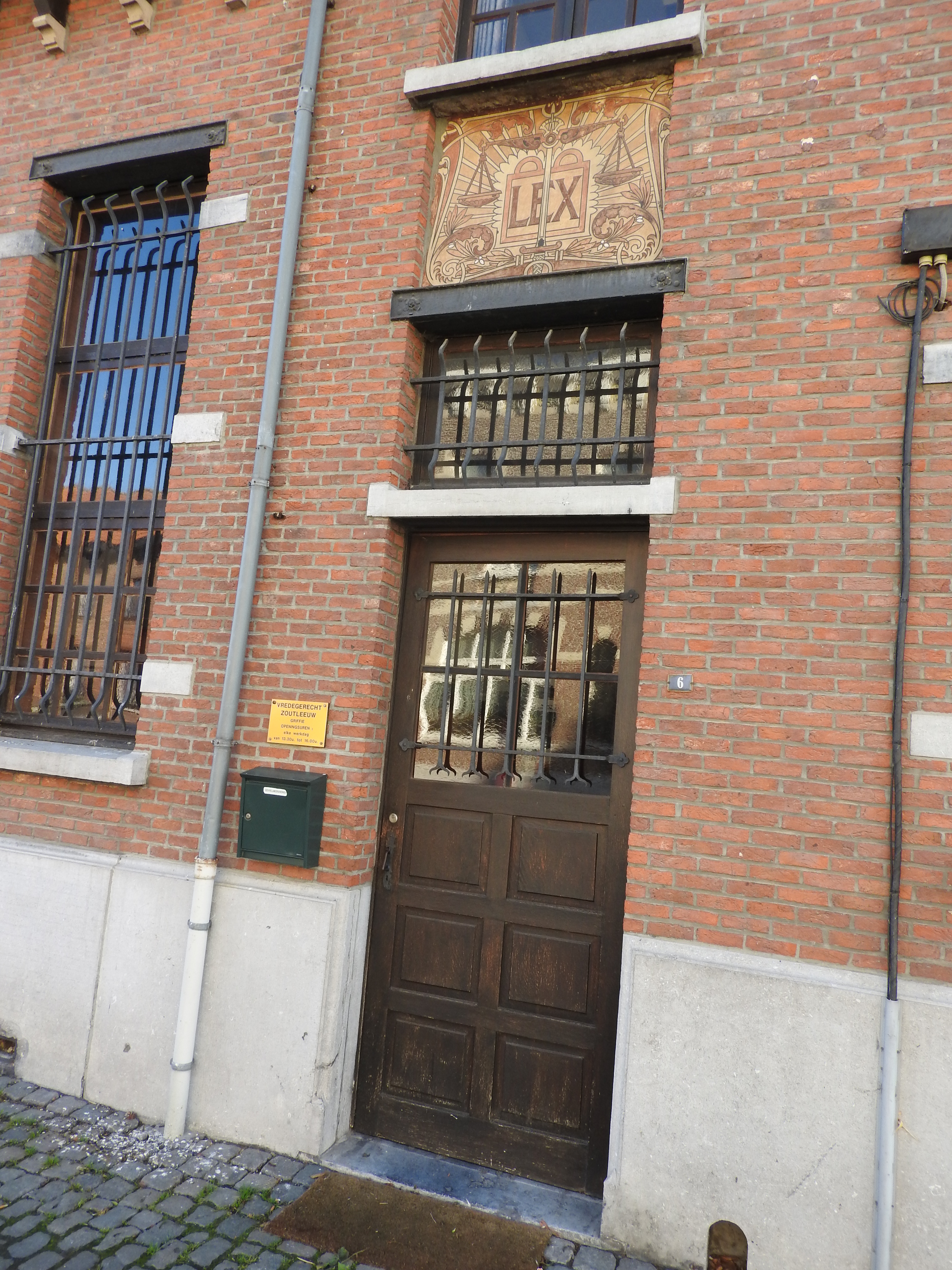De afbeelding 'Vredegerecht' gemaakt door Vandeweghe, Evert wordt ter beschikking gesteld door Agentschap Onroerend Erfgoed (AOE) onder de volgende voorwaarden: Modellicentie voor gratis hergebruik, Naamsvermelding-GelijkDelen 4.0 Internationaal.